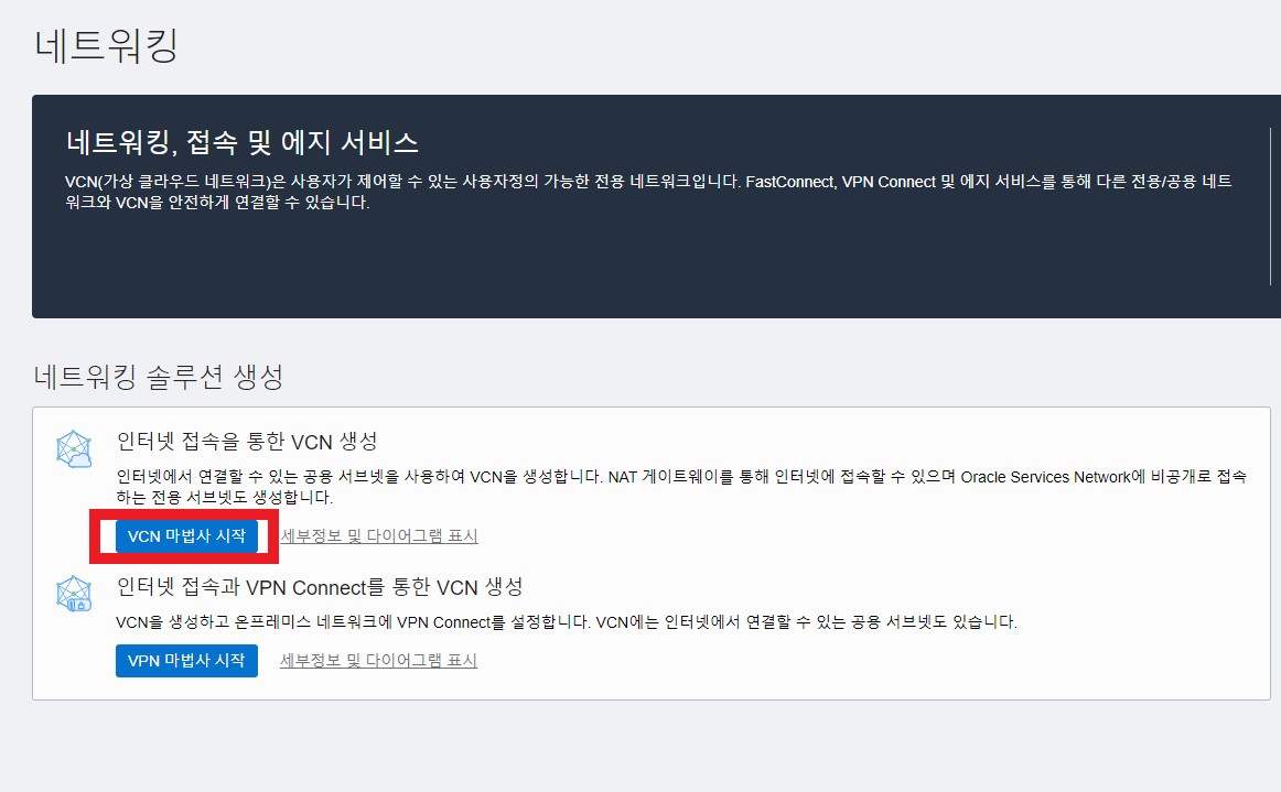 VCN 마법사 시작을 클릭합니다.
