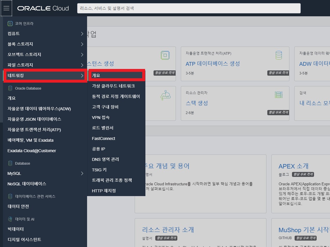 네트워킹 > 개요를 들어갑니다.