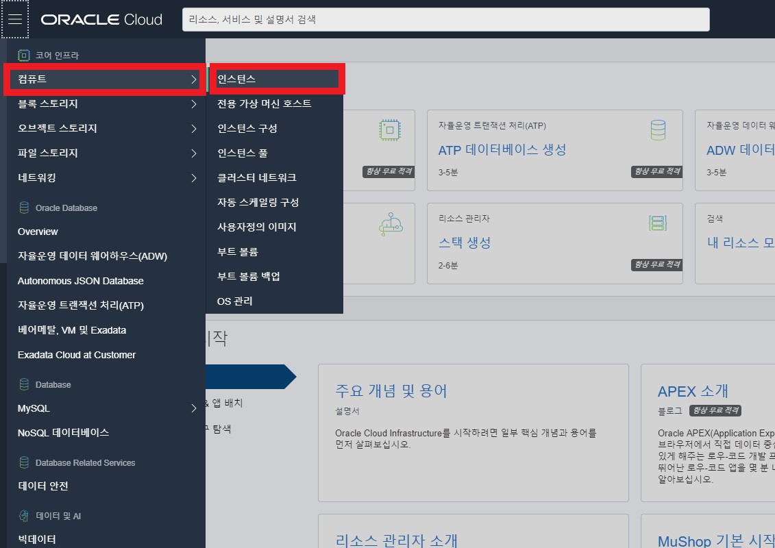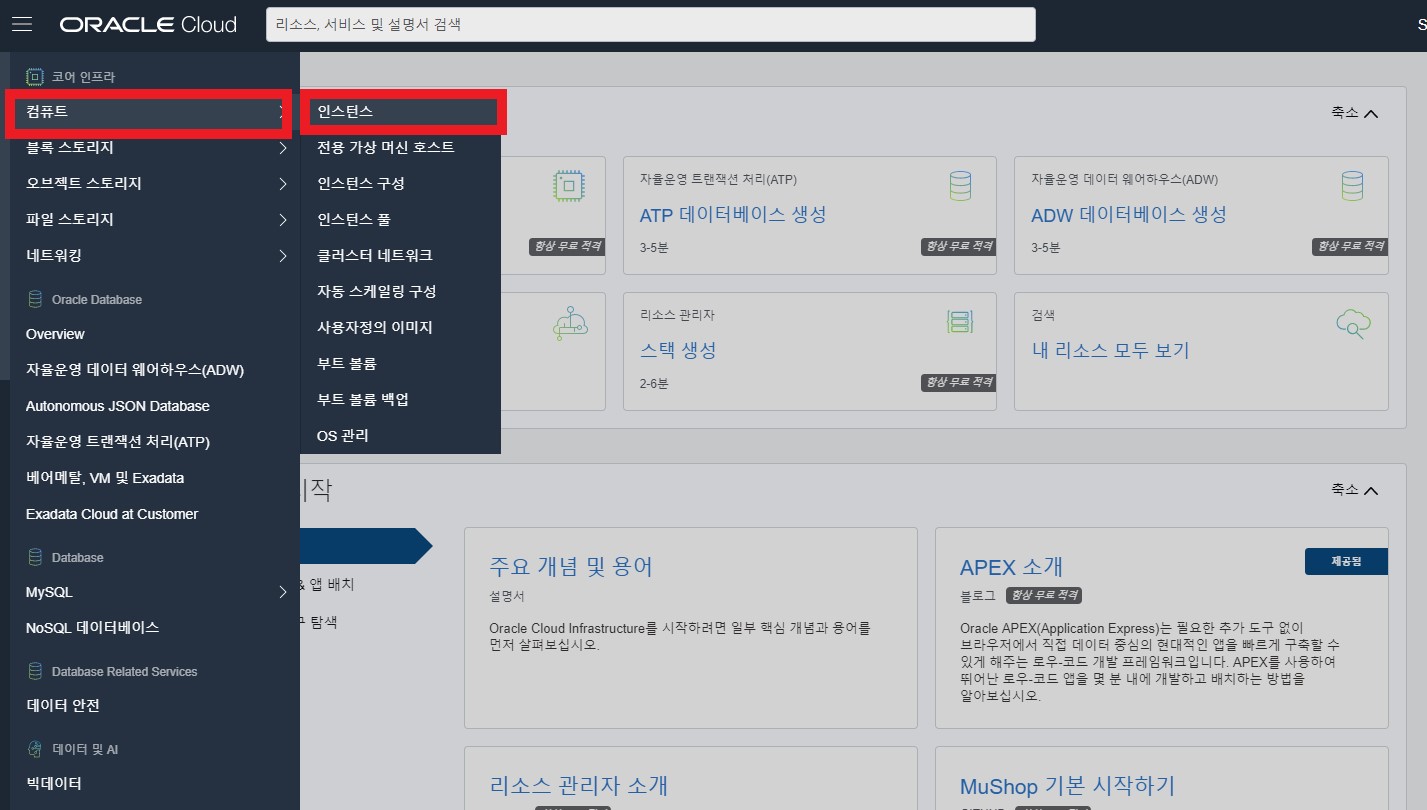 컴퓨터 > 인스턴스를 클릭합니다.