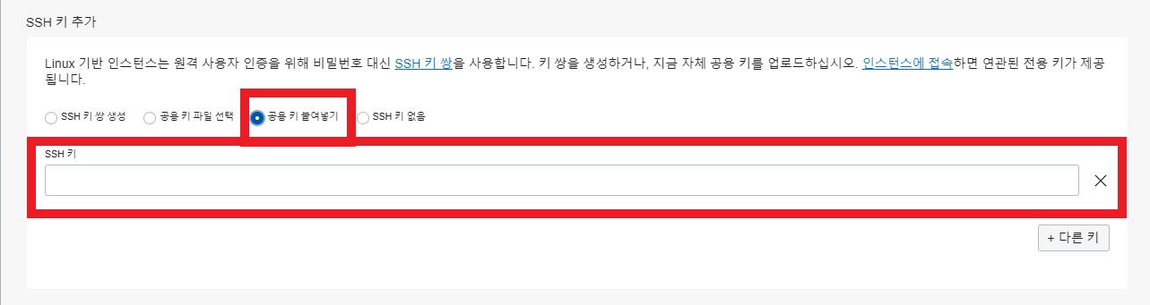 SSH 키 추가 항목에 공용 키 붙여넣기를 선택 후