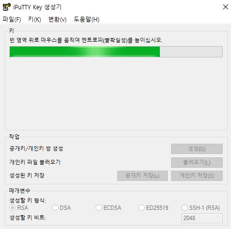 설치 완료 후 puttygen.exe를 실행합니다.